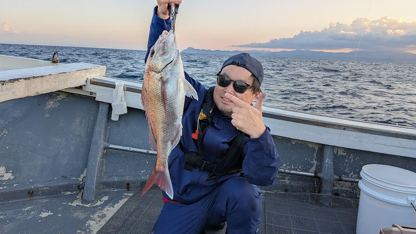 キレイな朝焼けの中マダイとアマダイが釣れてくれました!