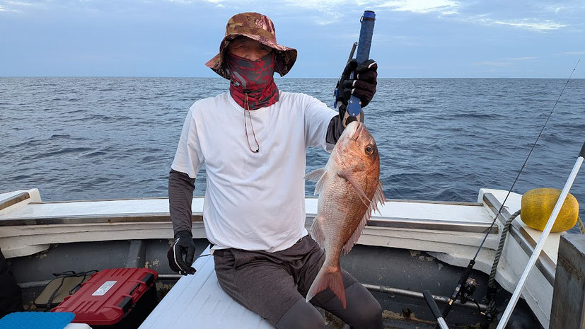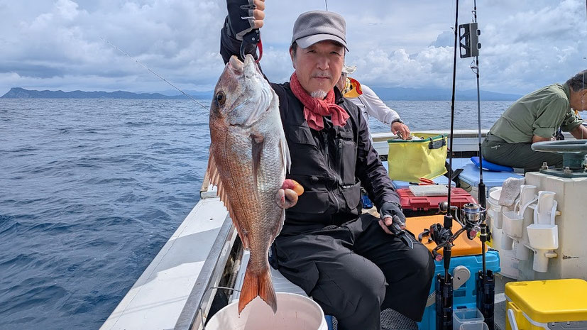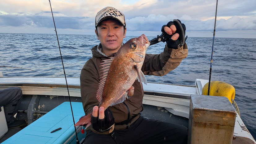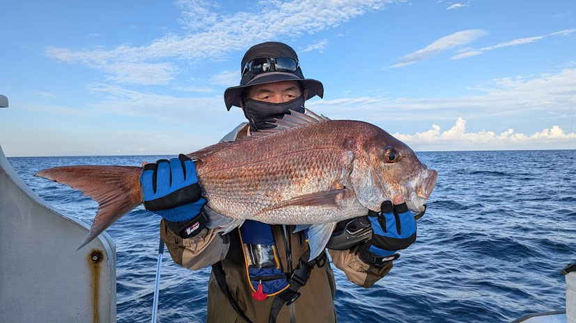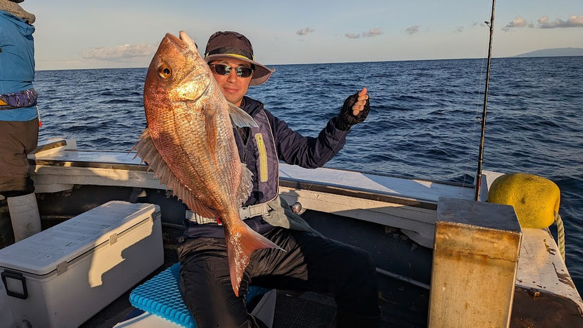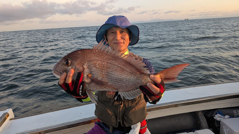 今日はベタ凪であまり船も流れない中でも良型マダイが顔を見せてくれました。