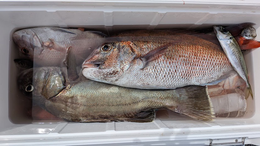 2025/08/22 8月22日 今日は朝一ポツポツで潮止まり後は渋かったです。 本命の他にイシナギとアジもキャッチ! アジと遊んでるうちに時合い終了w 袋にしまわれてるのは写真省略です。 tagPlaceholderカテゴリ: 2025年8月 コメントをお書きください コメント: 0