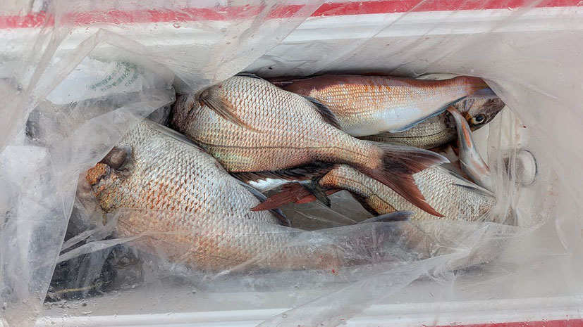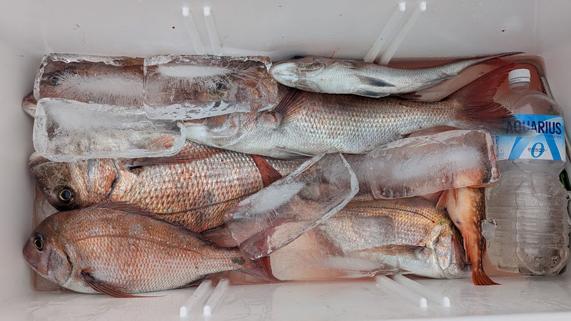 デカいのがヒットしても時間がかかるとサメにガブリといかれて中々キャッチ出来ず結構な数の
